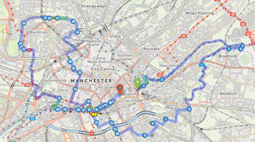 Heading north out of the City we’ll travel up the Rochdale Canal to the Etihad stadium, then head towards Salford before returning back to Manchester via the Irwell River.